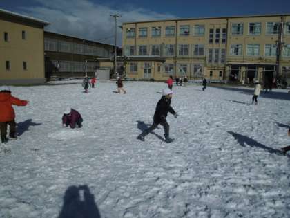 今日は,雪がたくさん降って,運動場に積もりました。雪を見て,おおはしゃぎの子どもたち。友達と雪玉を投げ合ったり,雪だるまを作ったり,雪をふみしめる音を楽しんだりしていました。