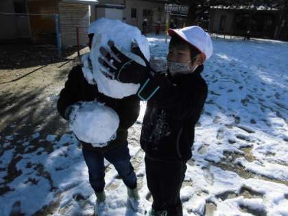 大きな雪玉を作って,友達と大きさやきれいさを競っていました。