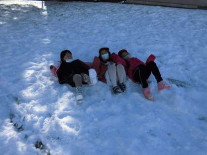 雪は積もったばかりで水分を含まずにさらさらしており,雪の上に寝ころぶと,ふわふわで気持ちがよかったです。