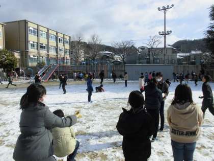 先週の金曜日には,雪が積もり,子どもたちは大喜びでした。