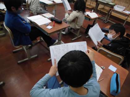 ウイルス対策で,席に座ったまま友達の詩集を交換して読み,付箋で感想を伝えるという形にはなりましたが,友達の詩集を読んで,自分では気づかなかったおもしろさに気付けたようでした。