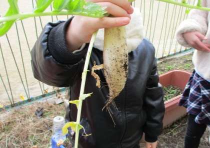 大根を抜いてみたら,からまっていて,2本も抜けました。