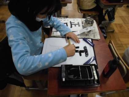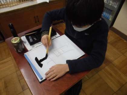 今日は書写で「正月」という字を書きました。