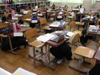 1次避難では,自分の机の中に入り,頭をかくしました。