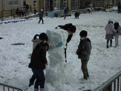雪合戦をしたり,雪だるまをつくったりしました。