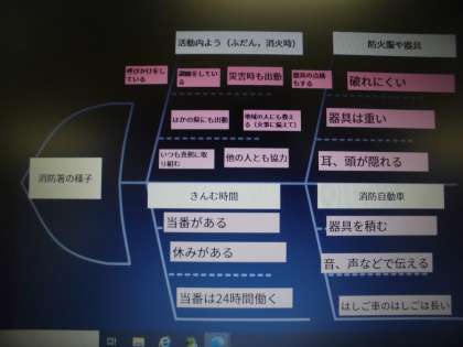 今日は,たくさんの資料を使って,消防署の様子についてまとめました。