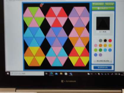 今日は,正三角形や二等辺三角形をしきつめて,どんな形をつくることができるかGIGA端末を使って作りました。