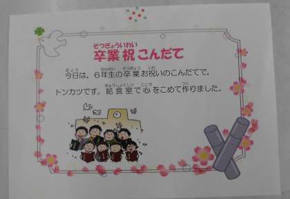 6年生の卒業をお祝いする気持ちをもって食べました。