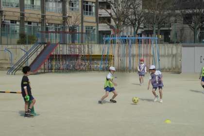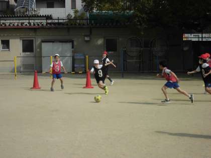勢いあまってこけてしまうこともありますが,手当てをしてもらうとまた試合に参加している子もいました。