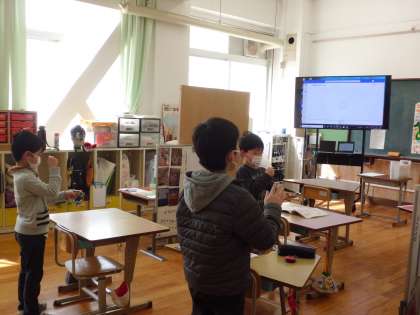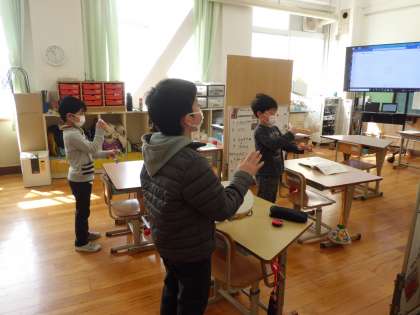 先週の金曜日,5年生の「威風堂々」のリズムに合わせてタンブリンと鈴でリズム打ちをしました。