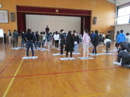最後に,新聞折りたたみゲームをしました。