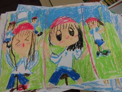 1年生の思い出をみんなで出し合い,絵を描きました。みんなが描いた絵は,新1年生の教室に飾る予定です。「北白川小学校にはこんなに楽しいことがいっぱいあるんだよ!」というメッセージになればいいな,と思っています。