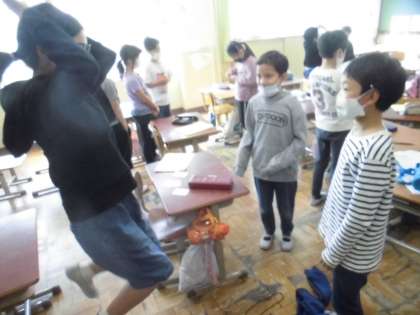 グループの一人が動物になりきってジェスチャーで伝えます。
