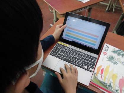 アンケートは「ロイロノート」の中のソフトを使って作成し,みんなで答え合いました。