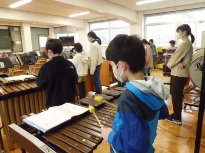 今日は今年度最後の音楽の授業がありました。最後に「威風堂々」をみんなで合奏しました。