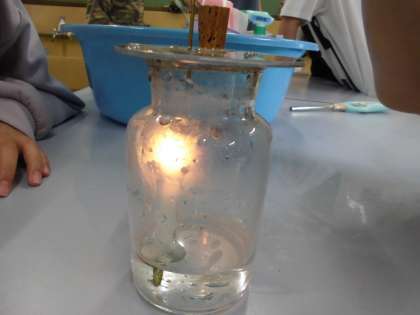 酸素が多い空気の中では,ろうそくの火が輝くように光っていました。