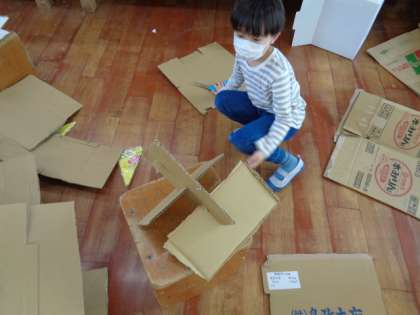 図画工作科の学習で段ボールを使った造形遊びをしました。