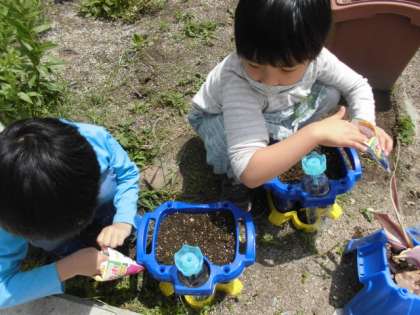 1組 1年生 あさがおの種まき