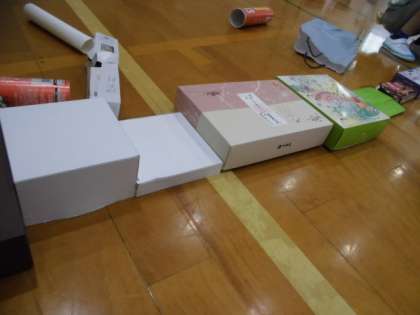 空き箱を使って,船や線路などを作って楽しみました。