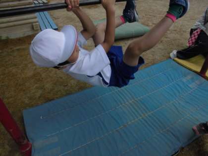 1年生は「てつぼうあそび」をしています。