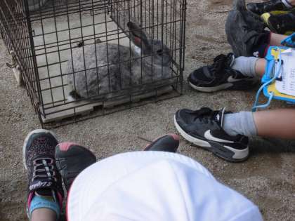 「かわいい」「目が真ん丸だね」「ふわふわだ」「きもちいい」「鼻がクンクン動いているね。」「どこに口があるのかな」
