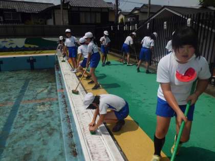 5・6年生でプール清掃をしました。