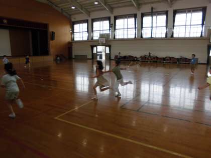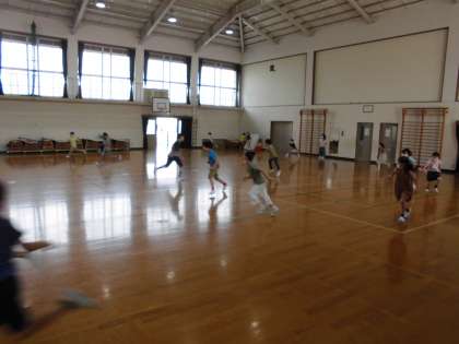 5・6年生の体育委員会の人と一緒に思いっきり楽しむ姿を見て,違う学年の人と楽しく遊べてよかったなと思いました。