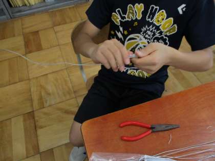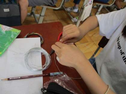 まず針金を触ってみて,作品作りに取り掛かります。切ったり曲げたり…