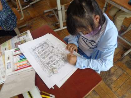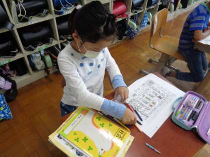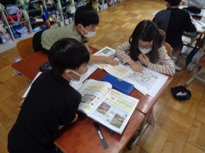 社会科で「スーパーマーケットはどのようにしてたくさんのお客さんに来てもらえるようにしているのだろう」という学習問題をたてて学習しています。