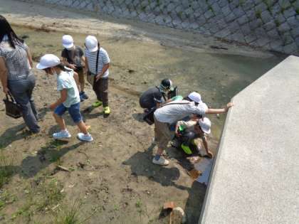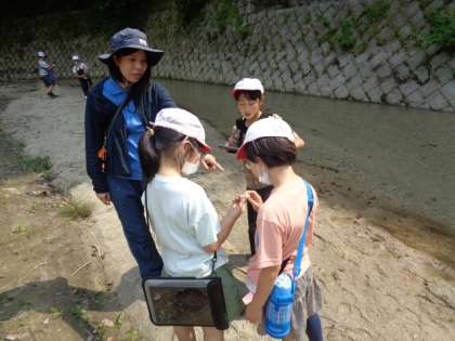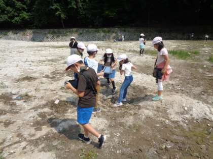 川の流れている様子や,砂のたまっている様子,川底の意思の様子などを観察することができました。