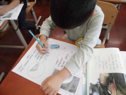 「くちばし」では,問いや答えを読み取って,プリントにまとめました。読み取ったくちばしの特徴を絵に表したりもしました。「くちばし」で学習したことを生かして,「いきものクイズ」も作って友達と問題を出し合いました。