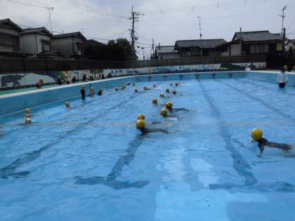 引き続き,水慣れをしました。少しずつ水にも慣れてきたので,今日は,友達と水かけっこをしたり,わにさんに変身して,手の力で水の中を進んだりしました。すいすいととっても上手にわにさんに変身していました。