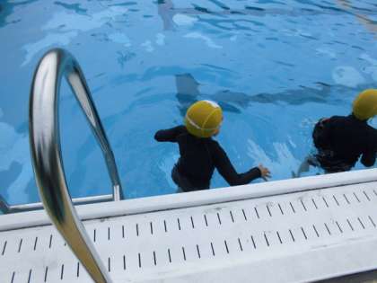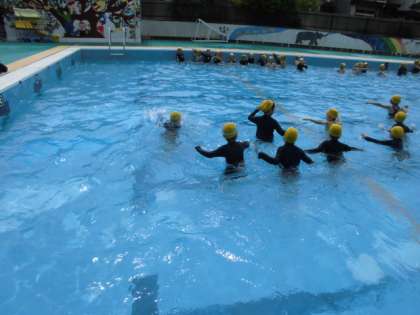 あひるになって歩いたり,プール1周探検をしたり,宝探しをしたりして楽しみました。