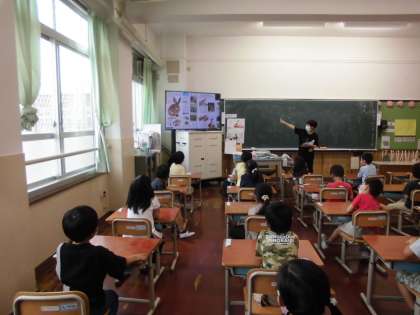 うさぎの観察をして,色々と疑問を持った子どもたち。今日は,飼育委員会の先生である松田先生に来ていただいて,うさぎについての疑問の答えを教えていただきました。うさぎは,90種類くらいいること,耳の中に毛が生えていないのは,よく聞こえるようにすること,ひげも大事な役目をしていることなど教えていただき,真剣に話を聞いていました。