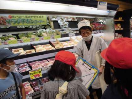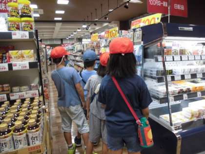 昨日,社会科の「商店のはたらき」で,3年生のみんなと一緒に校区内のスーパーマーケットへ見学に行きました。