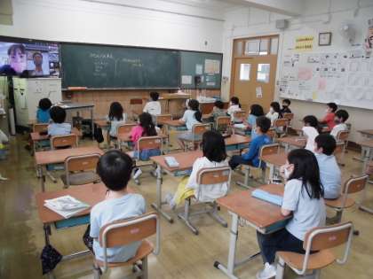 不審者が入ってきたときは,こんな放送が流れるよということを確認したり,自分たちは教室でどのように動くのかということを実際にやってみたりしました。