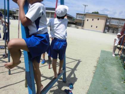 遊具の握り方に注意して楽しく遊びました。
