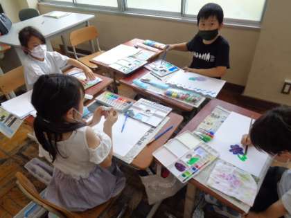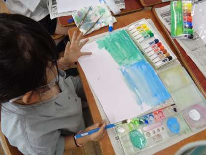 先週,6月の色を絵の具で工夫して表しました。今回の学習では形と色も併せて,どんな絵に表せるかを考えながら描きました。