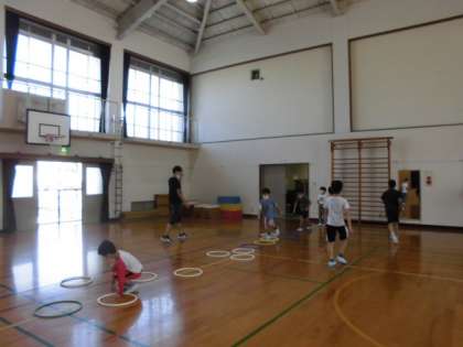 体育委員会の企画で,体育委員会の6年生と一緒にケンパをして楽しく遊びました。