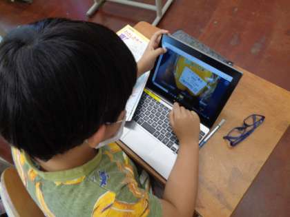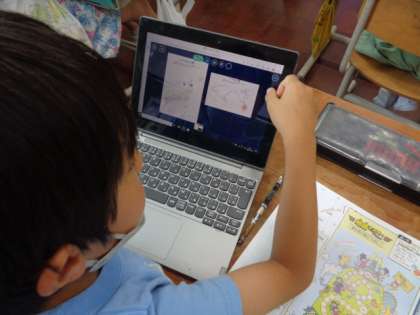 ギガ端末を使って,スーパーマーケットの商品はどこからきているのかを調べました。