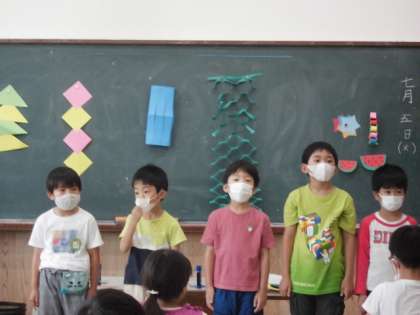 一緒に七夕飾りを作り、短冊に願い事を書きました。