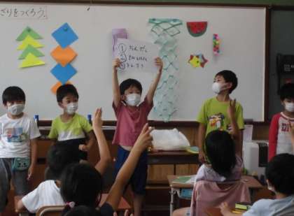 2年生と七夕飾りを作る交流をしました。