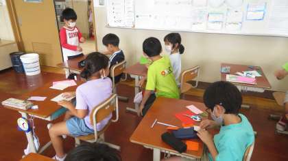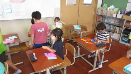 1組さんの子どもたちが,飾りのつくり方を説明してくれました。