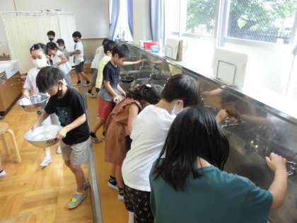 1Lの水を水やりすると、「けっこう多かった!」という子どもたちが多かったですが、なべややかんに入る水の量を測ってみると、1Lは思ったよりも少なかったようで、びっくりした様子が見られました。