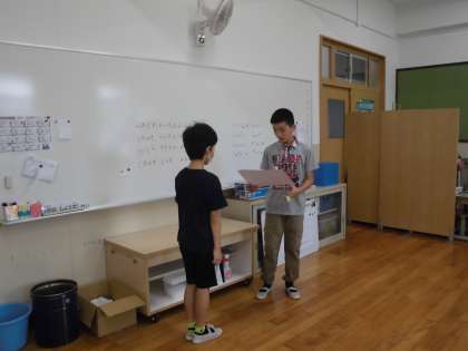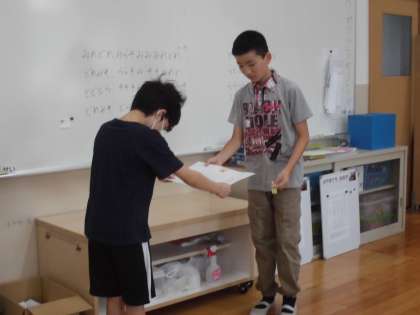 今日、体育委員さんが賞状をもってきてくれました。