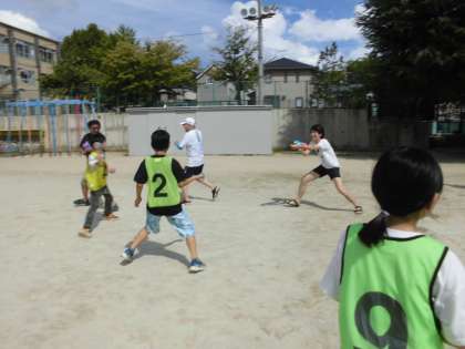 「おやじ」をねらって水風船を投げたり、「○×ゲーム」で間違えて「おやじ」からバケツで水をかけられたり、とても楽しそうにゲームを楽しんでいました。