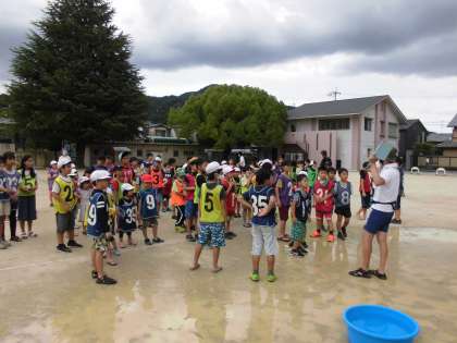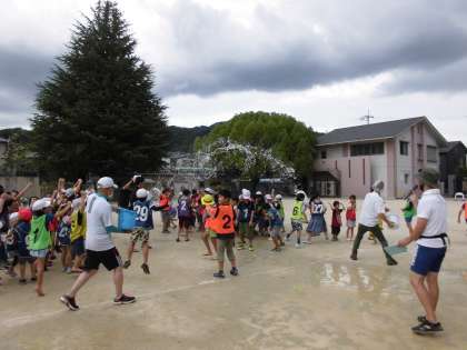 本日、午後2時よりおやじの会主催の「ずぶぬれ覚悟の水かけ大会」がありました。たくさんの子どもたちが水鉄砲を片手に参加してくれました。