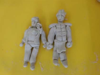 手先の器用な児童が、某アニメのキャラクターを油粘土で作りました。ちなみにサイズは1/12スケールで5センチくらいのミニチュアです。