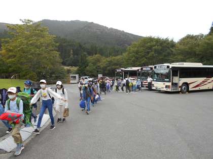 学校を出発して約1時間,ようやく山の家に到着しました。