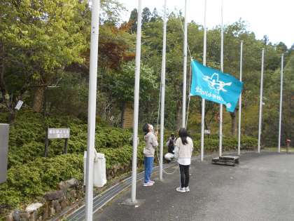 校歌清聴に合わせて,代表児童による校旗の掲揚をしました。